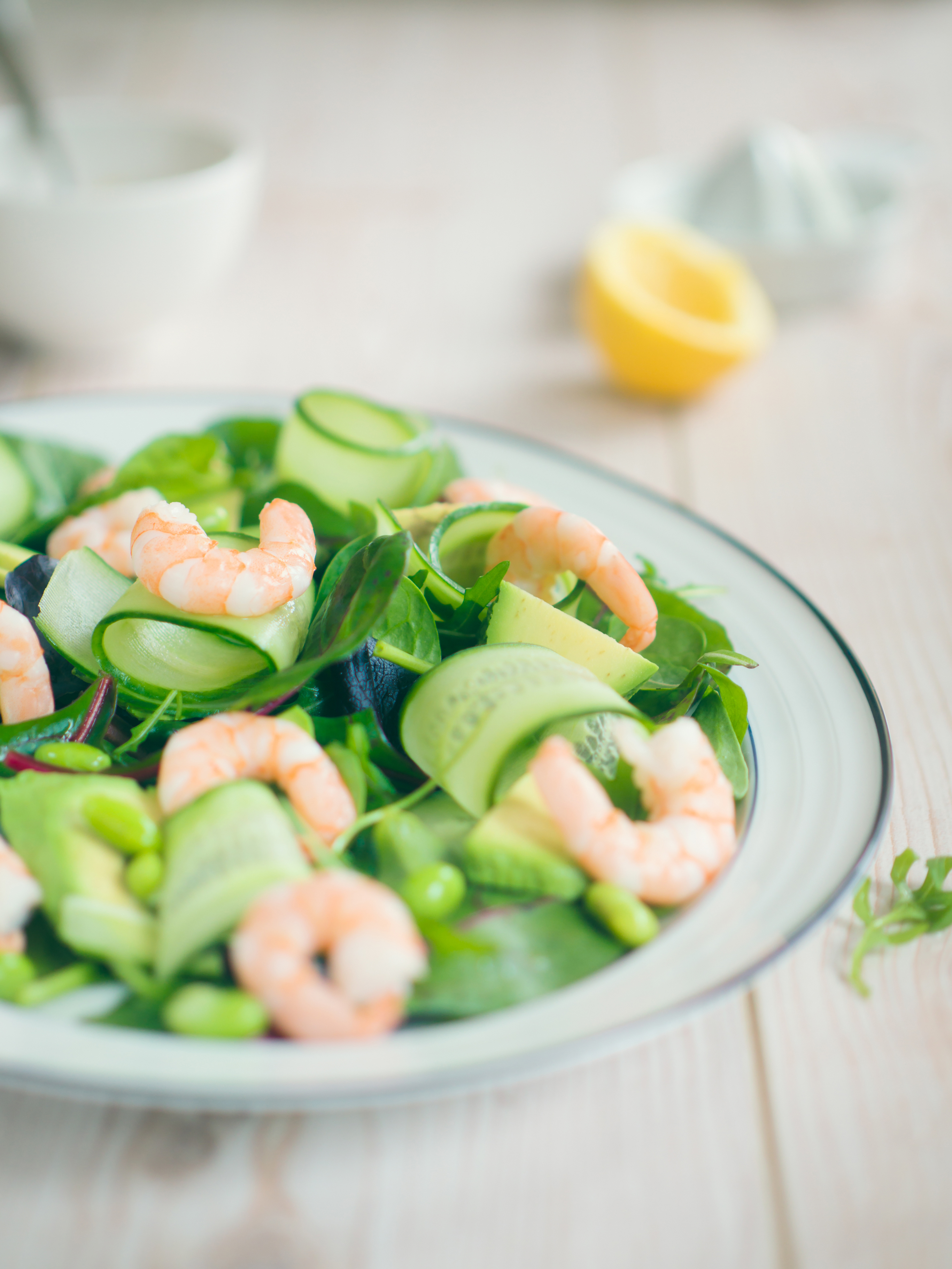 Gurken-Avocado-Salat mit Riesengarnelen
