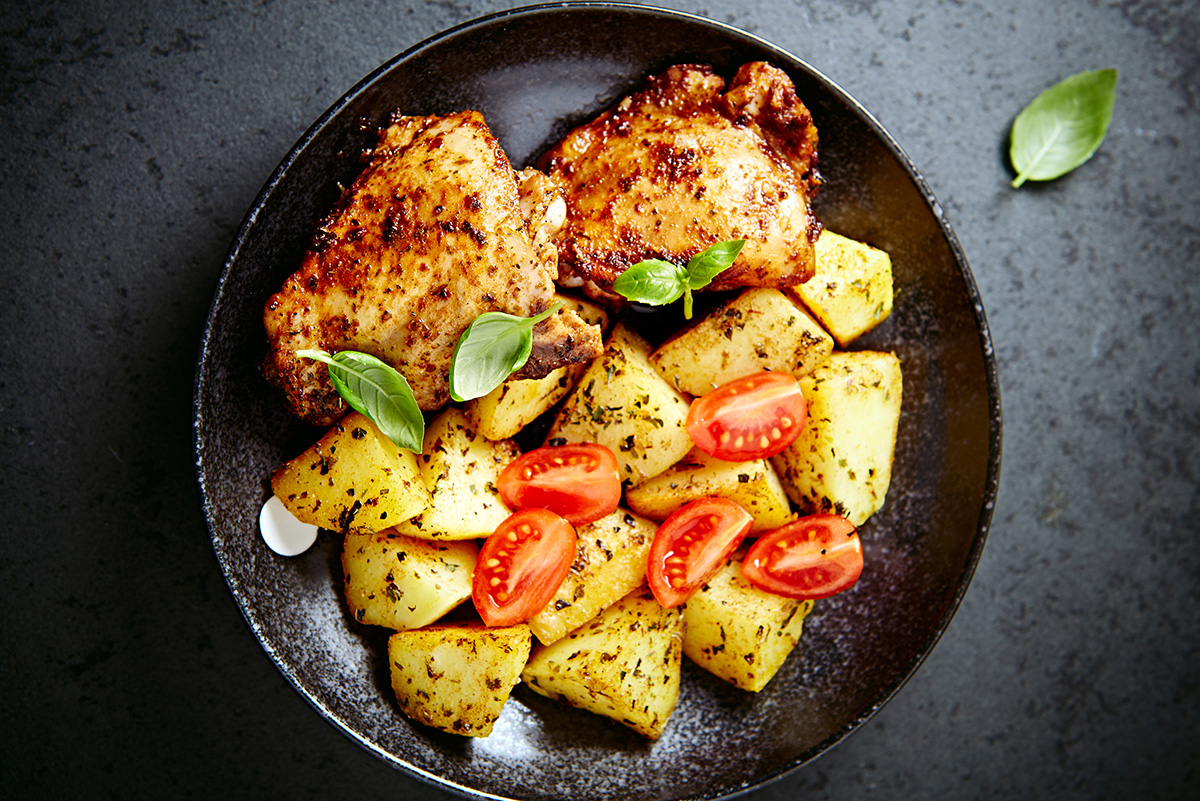 Würzige Kartoffeln aus der Pfanne, zart gebratene Hähnchenbrust und ein paar frische Tomaten obendrauf – schon hast du ein super leckeres Abendessen. Klare Aromen, einfach gemacht, richtig gut.