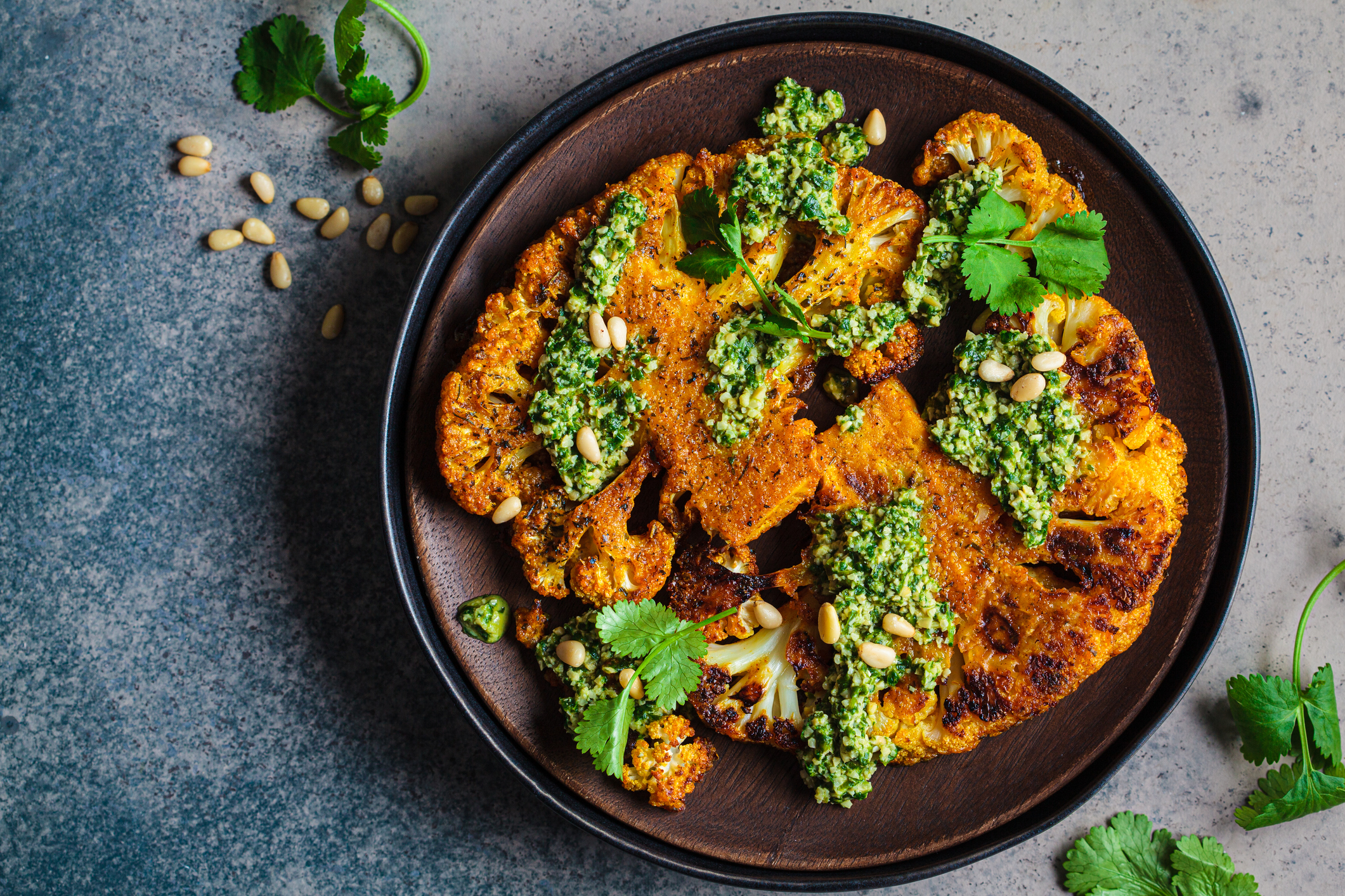Panierter Blumenkohl mit veganem Petersilien-Pesto