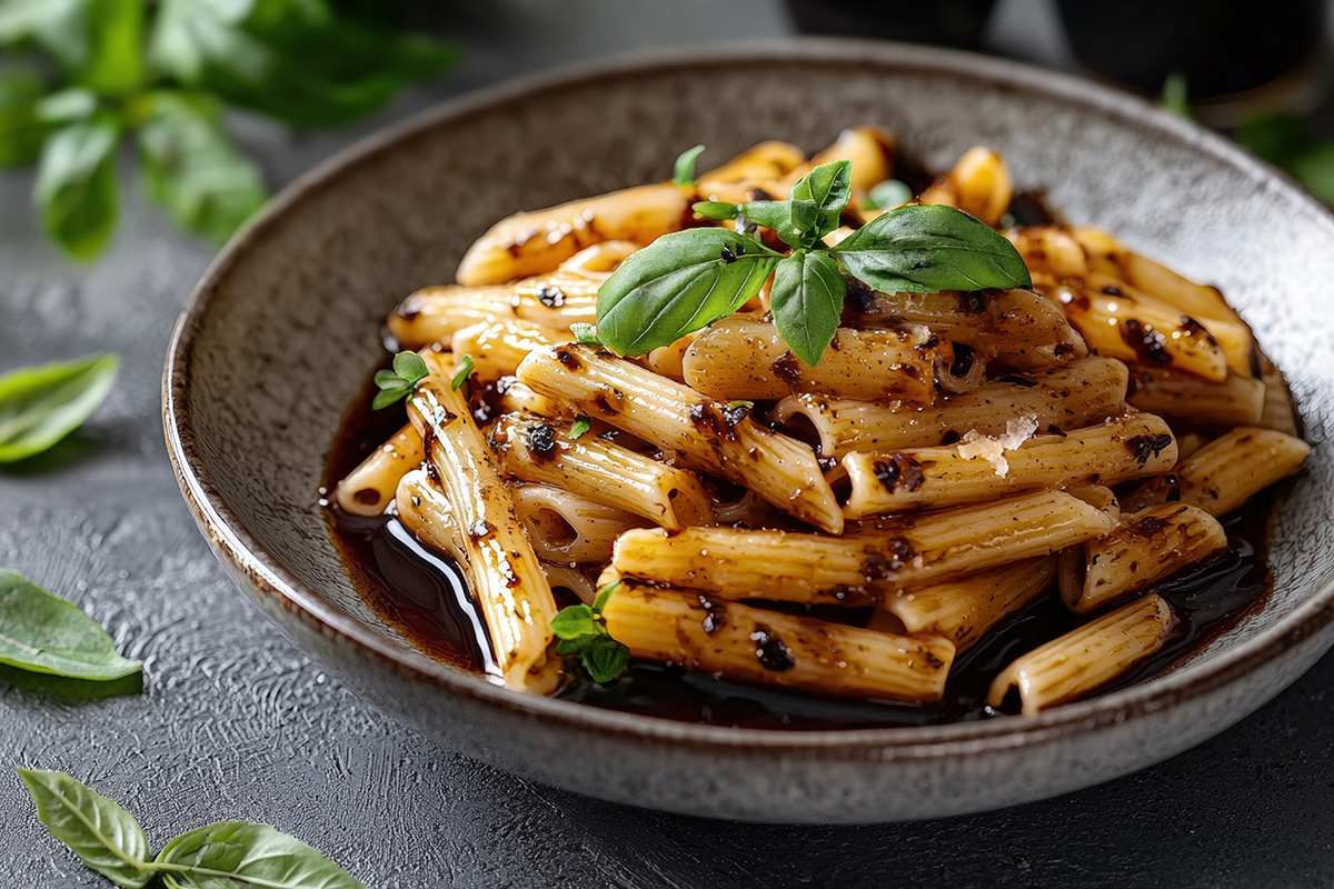 Wenn Pasta auf dunklen Balsamico trifft und Knoblauchpfeffer den Ton angibt, entsteht ein Gericht, das nicht laut sein muss, um Eindruck zu machen. Diese Penne sind schlicht, aber voll konzentrierter Aromen – leicht süß, würzig und mit genau der richtigen Würze. Perfekt für Abende, an denen man einfach etwas Gutes braucht.