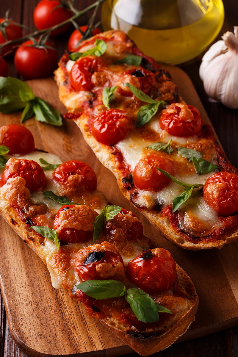 Diese köstlichen Pizza-Baguettes sind einfach zuzubereiten und perfekt für einen Snack oder als leichtes Abendessen. Mit frischen Tomaten, aromatischem Basilikum und einem Hauch von Kräuteralz bieten sie den klassischen Geschmack einer Margherita-Pizza in praktischer Form.