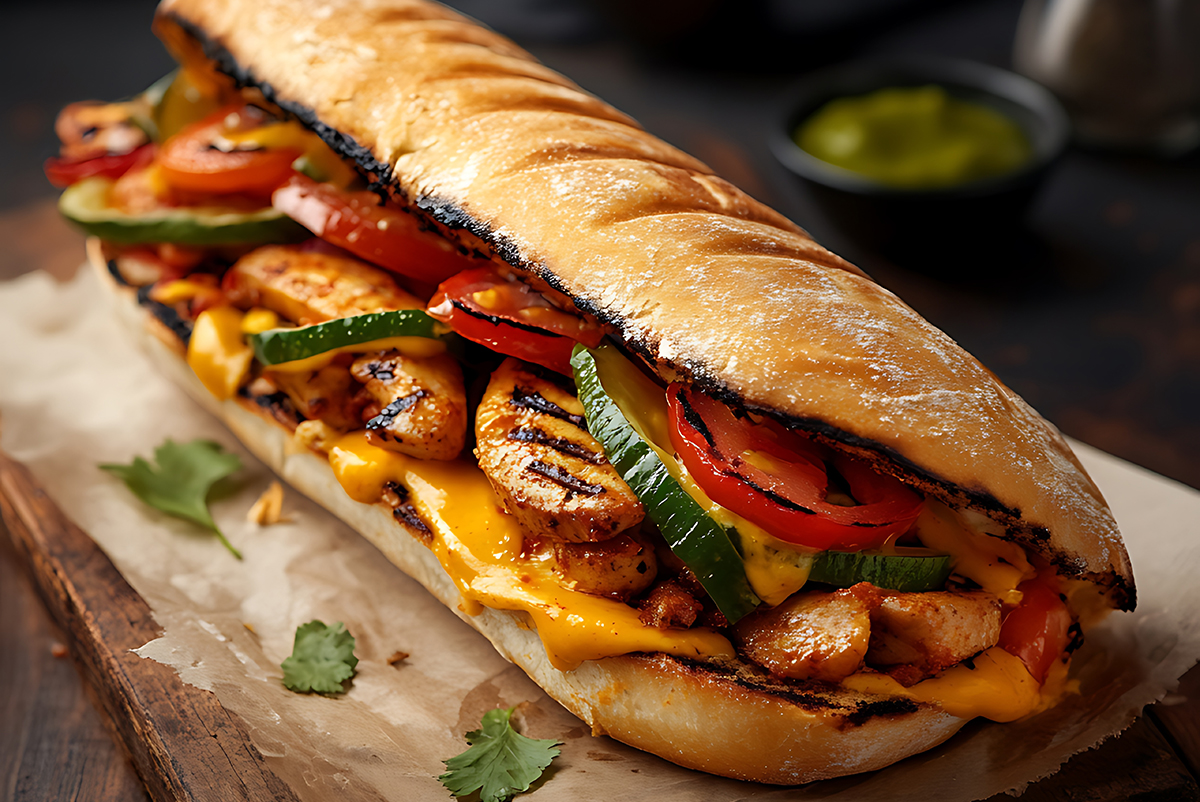 Herzhaft, würzig und sättigend: Dieses Sandwich im Fajita-Stil vereint saftiges gebratenes Hähnchen, aromatisches Gemüse und geschmolzenen Käse in einem knusprigen Brot. Das Fajita Gewürz bringt mexikanisches Flair auf deinen Teller – perfekt als kräftiges Abendessen oder schnelles Mittagessen.