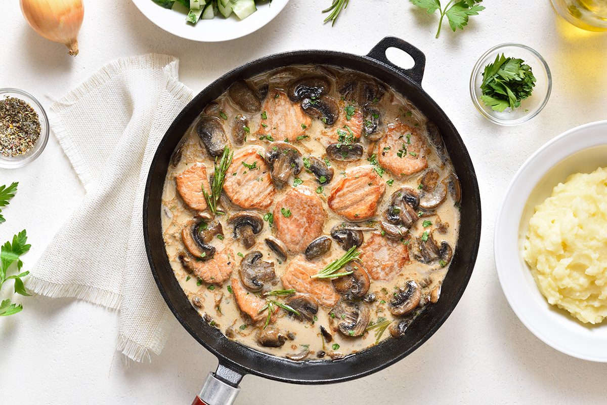 Zart gebratene Schweinemedaillons treffen auf eine sahnige Pilzpfanne mit feiner Pfefferwürze. Der Steakpfeffer bringt Geschmack und ein bisschen Schärfe – perfekt zur cremigen Sauce und dem saftigen Fleisch.
